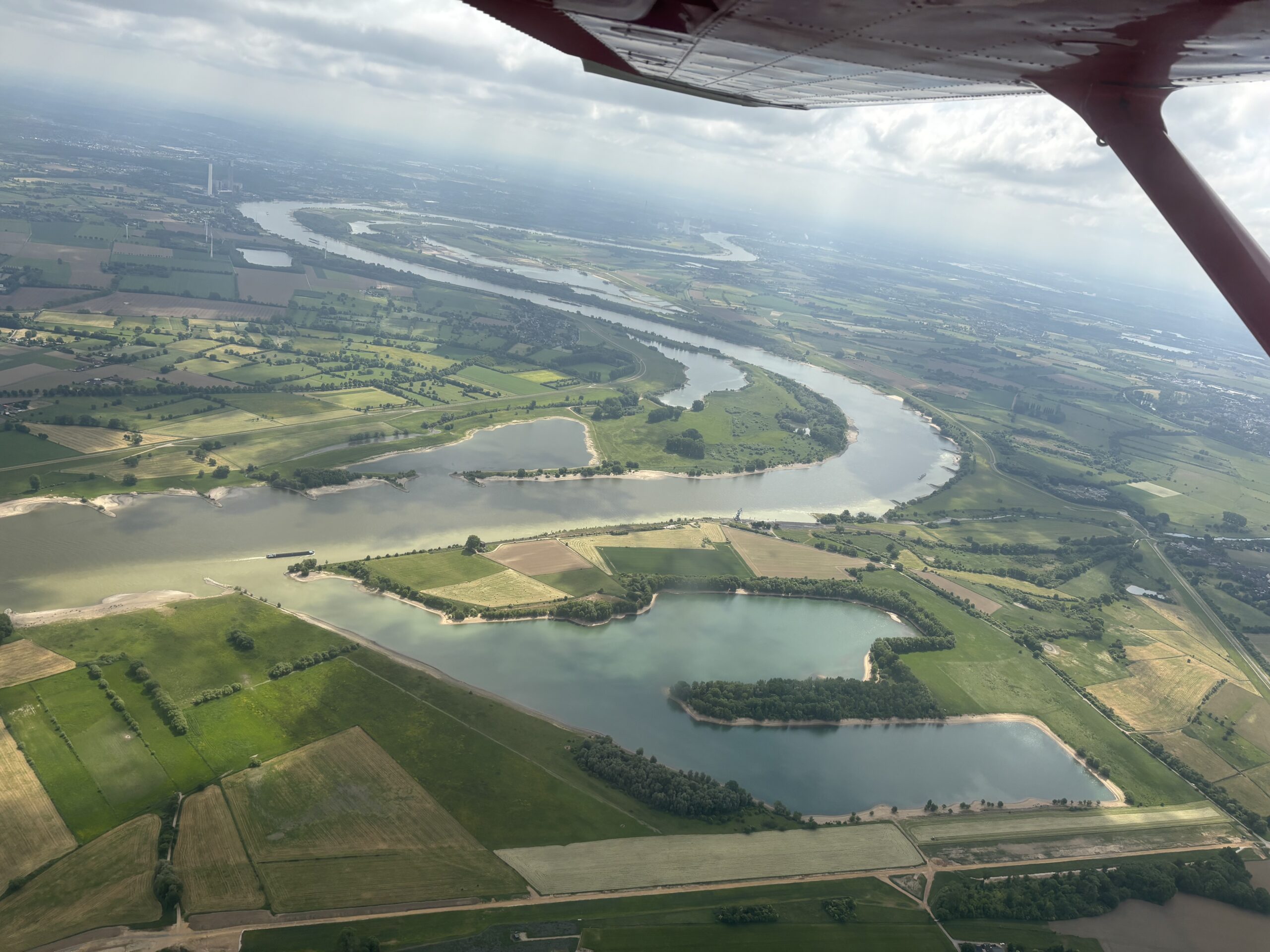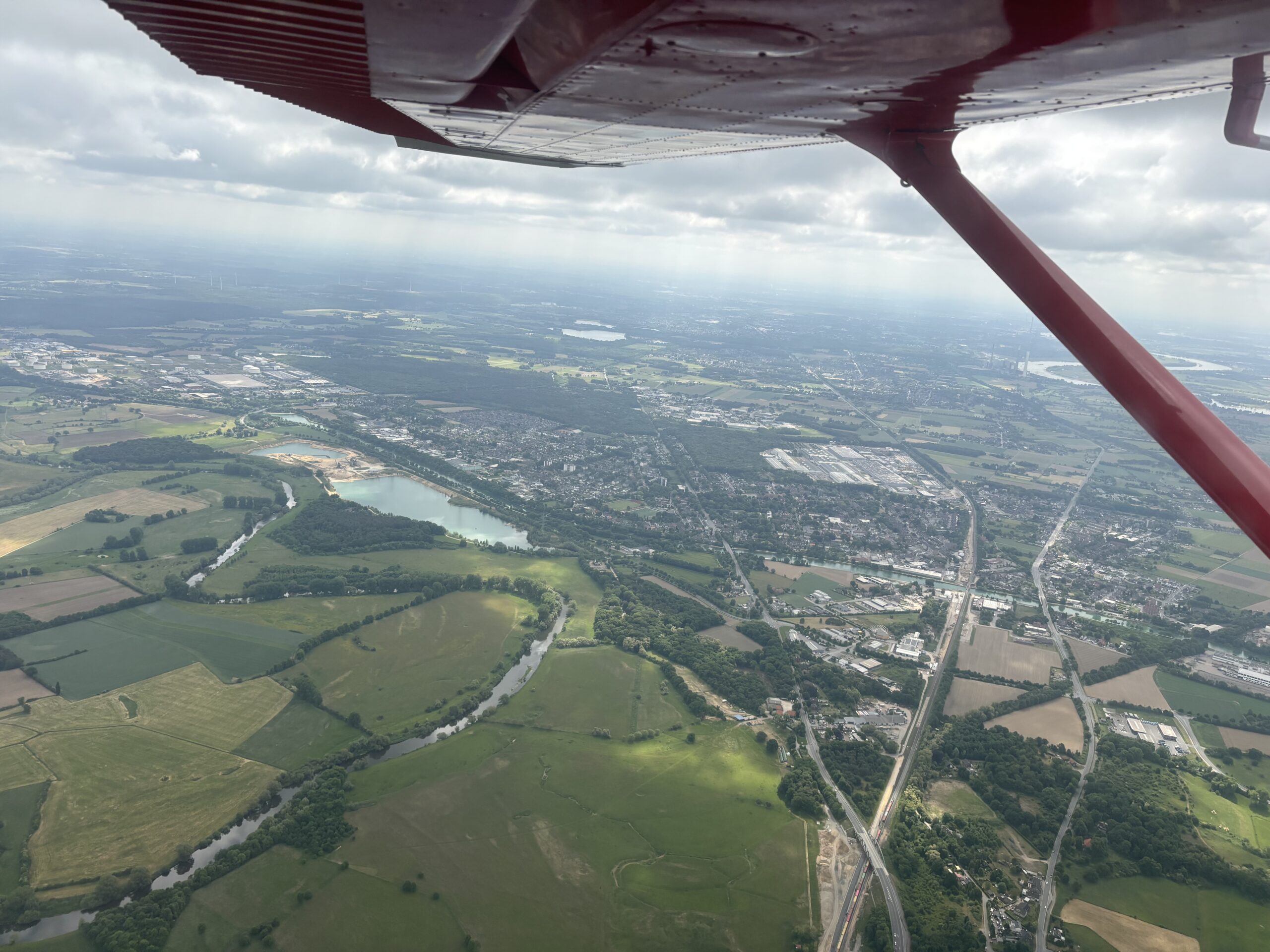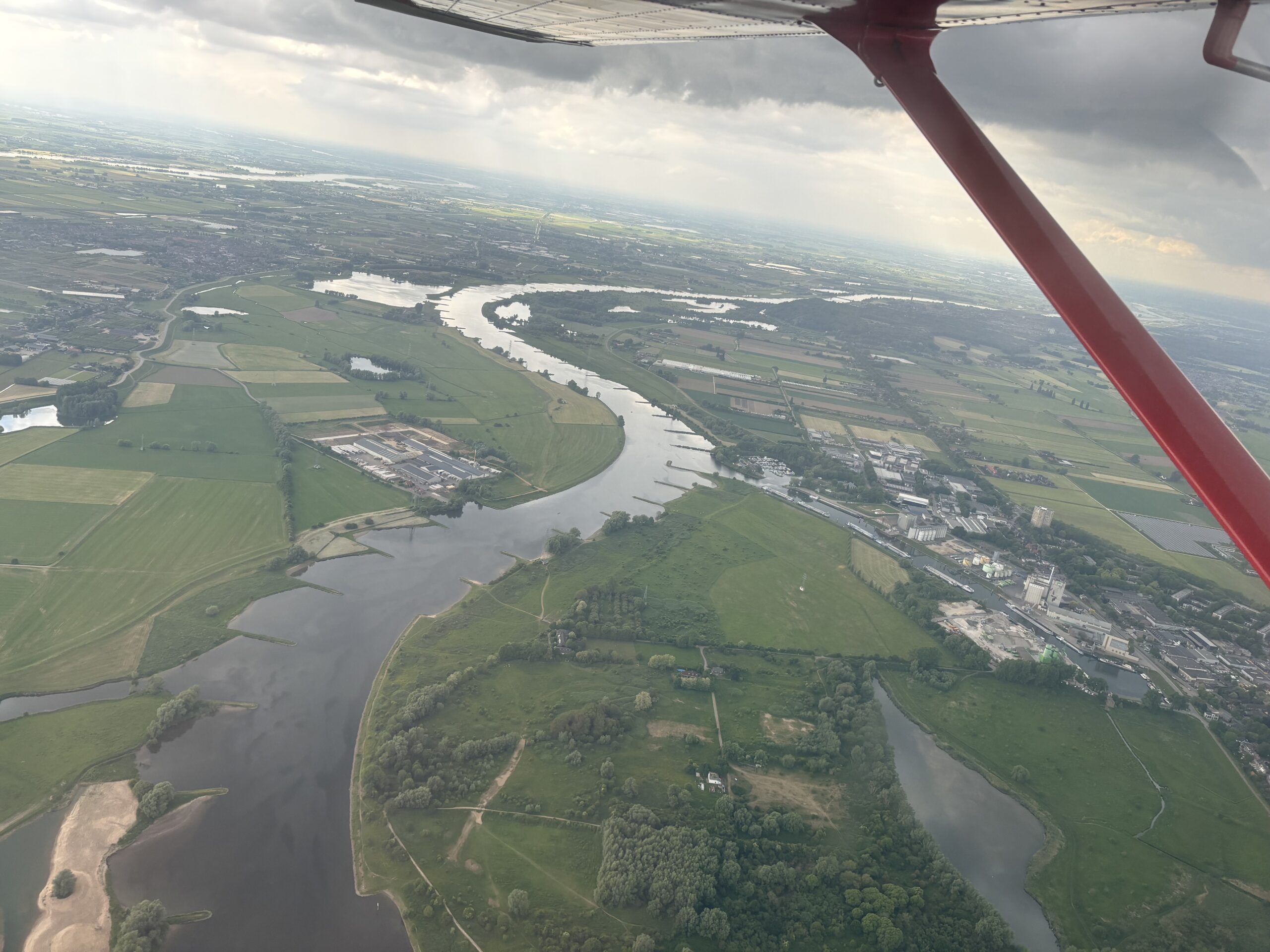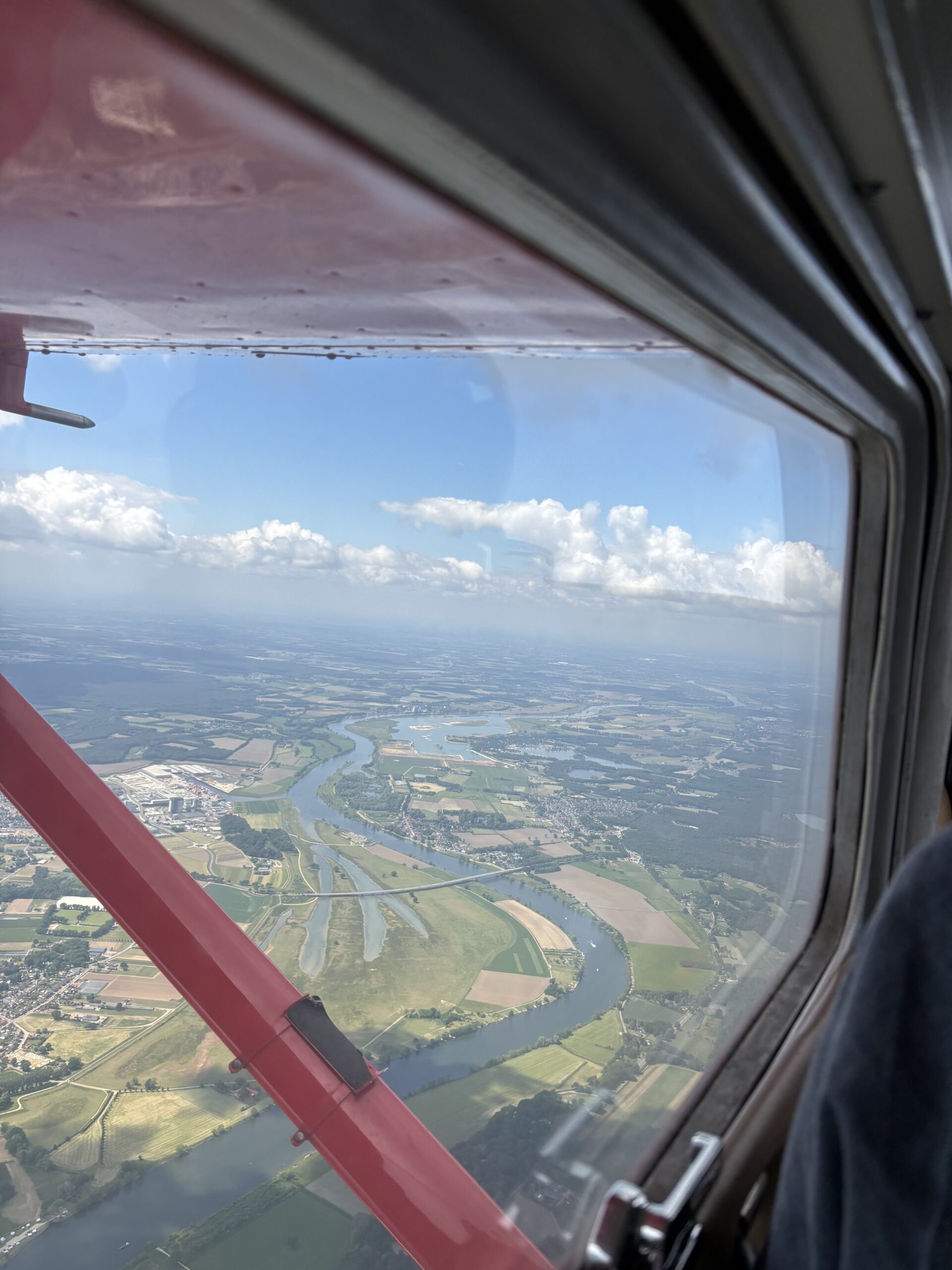 Daarna was het plan om door te vliegen naar Koblenz, maar onderweg kregen we te maken met steeds lagere bewolking. Veiligheid staat altijd voorop, dus besloten we om uit te wijken naar Grefrath. Daar werden we gastvrij ontvangen en konden we alsnog genieten van een heerlijke lunch.